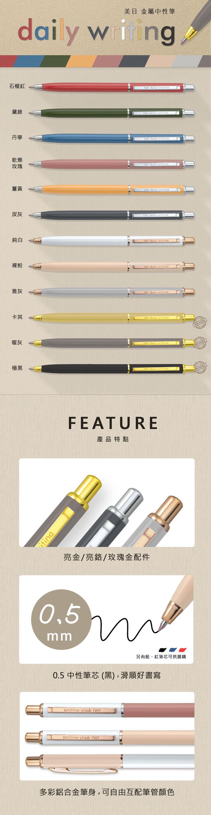 【IWI】daily writing 美日金屬中性筆 0.5mm黑油-純白