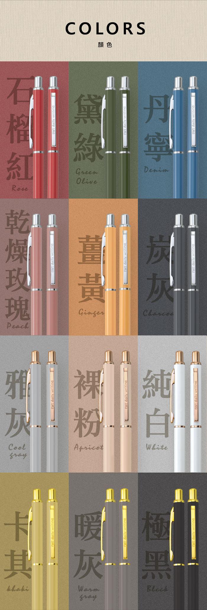 玩色新時尚,輕量感中性筆,搭配不同金屬配件,多種顏色可挑選,還可自己重組自由配