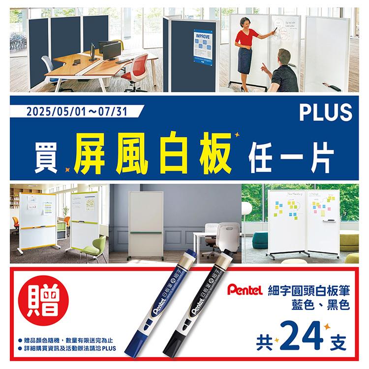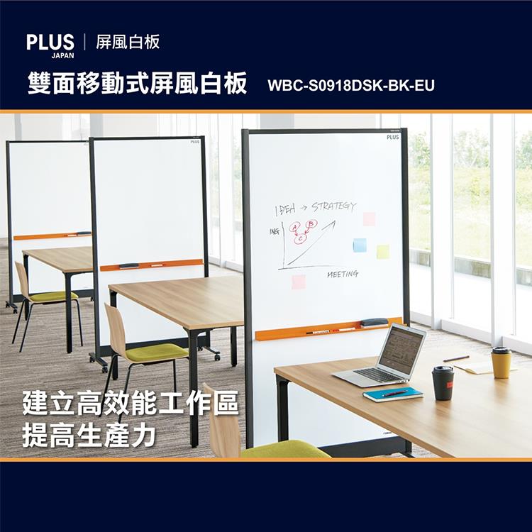 PLUS WBC-S1218DSK-BK寬版雙面屏風白板 1176x1643mm