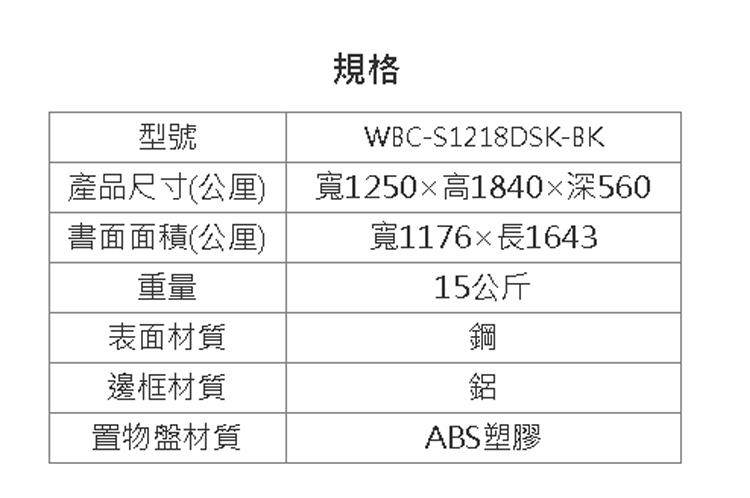 產品尺寸(公厘):寬1250×高1840×深560mm