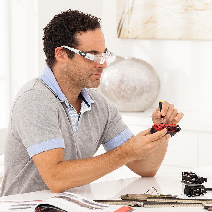 1. 戴上本產品-望遠眼鏡,依照個人舒適度調整鏡腳。