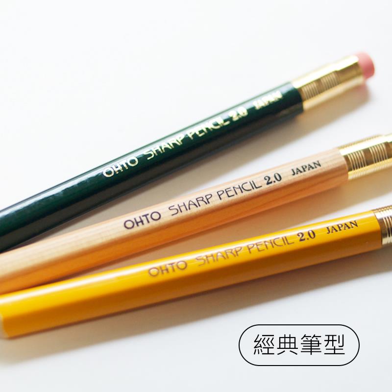 【OHTO】日本2mm復古木製粗型自動鉛筆(藍/黃/紅/黑/綠/木頭色6色可選) 附筆頭橡皮擦