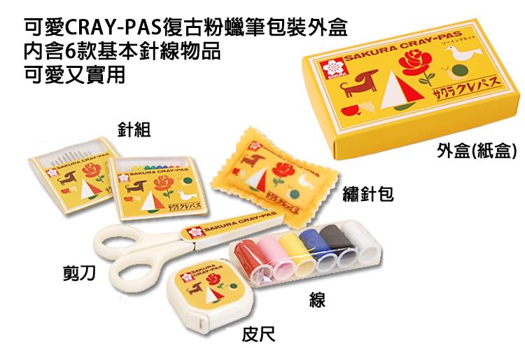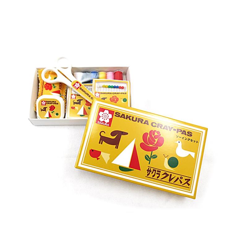 復古可愛的粉蠟筆包裝外盒設計的針線組。