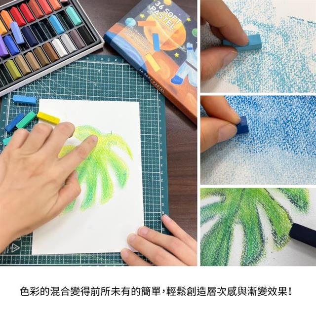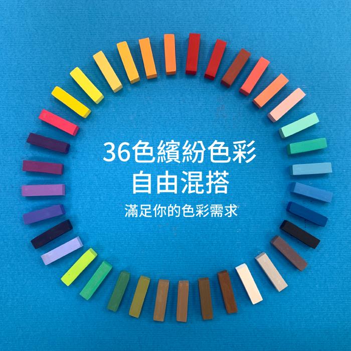 從明亮的黃到深邃的藍,36種色彩讓你的創意無限延伸。無論你是要畫出夢幻的童話世界,還是現實的自然風景,這套粉彩條都能滿足你的色彩需求。隨心混搭,讓每一個色彩組合都成為你的專屬配方!