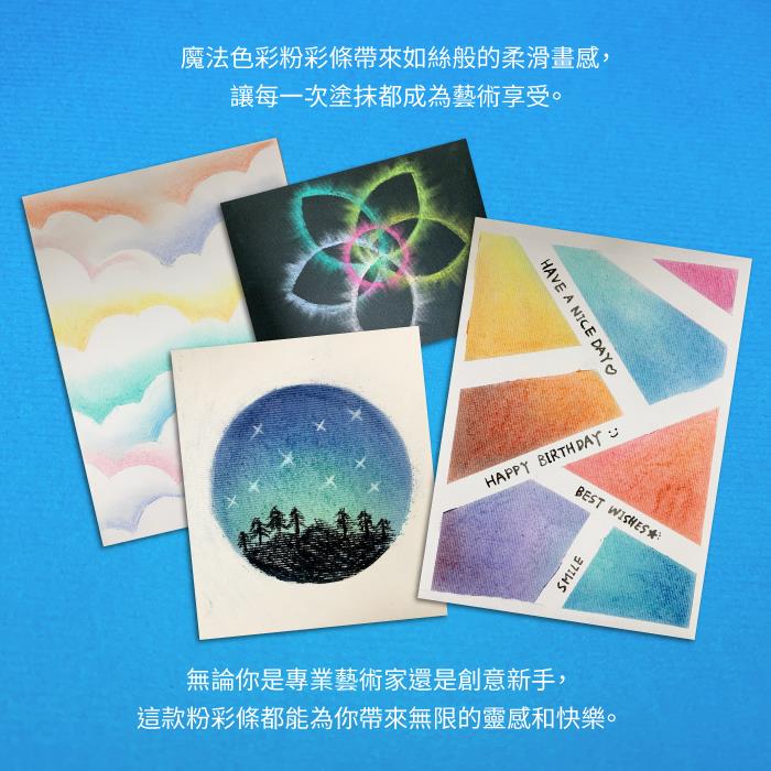 魔法色彩粉彩條帶來如絲般的柔滑畫感,讓每一次塗抹都成為藝術享受。色彩的混合變得前所未有的簡單,輕鬆創造層次感與漸變效果,讓你的作品更豐富、更動人!