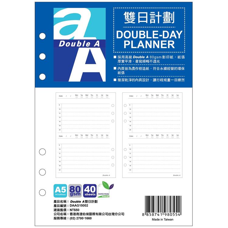 Double A 雙日計劃/A5 147*209mm/40張/DAAG15002