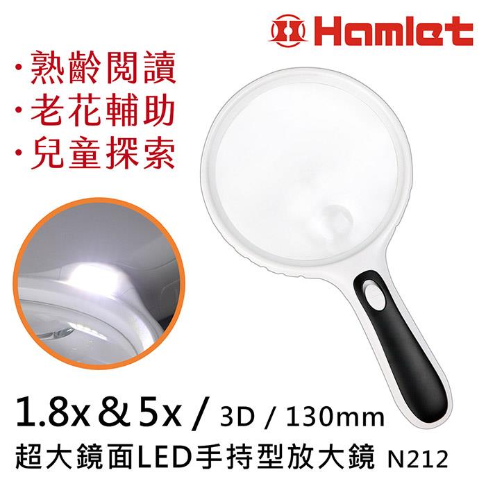 1.8x&5x / 3D / 130mm 超大鏡面LED手持型放大鏡 N212