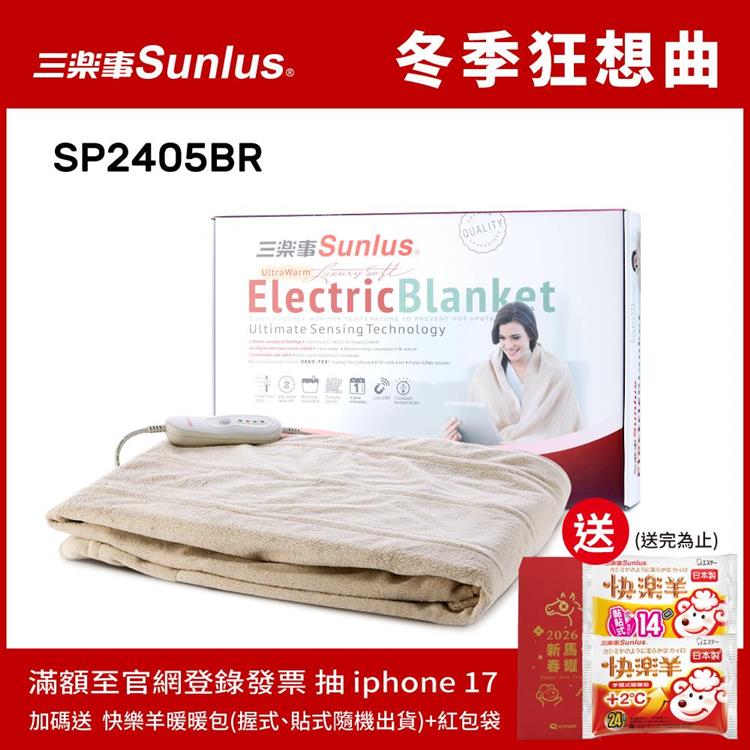 Sunlus三樂事可水洗隨意披蓋舒柔電熱毯SP2405BR