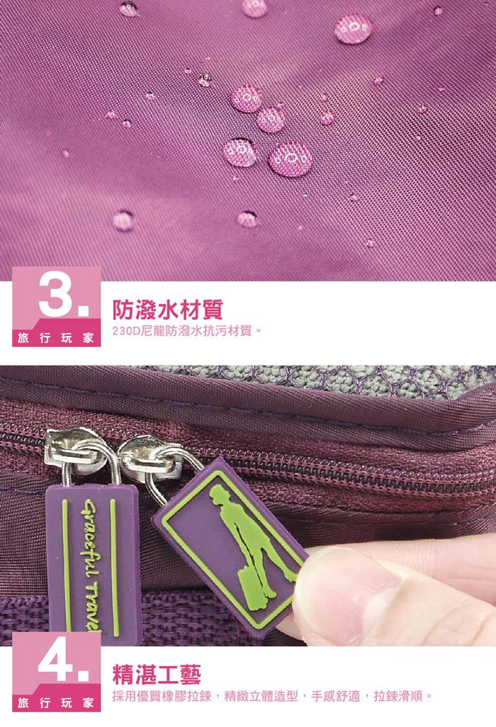 旅行時最怕翻開塞滿衣物的行李箱嗎?別怕,您只要有《旅行玩家》旅行收納系列就安心囉,尺寸精心設計, 質地輕薄的分類收納包,堆疊整齊地放在行李箱中,像積木一樣堆疊,節省行李箱1/3的空間。加上表面網狀設計,方便您輕鬆辨識內容物,彷彿一個行動衣櫥,為您解決了旅行中打包取放行李的荒亂,讓您優雅旅行當玩家。