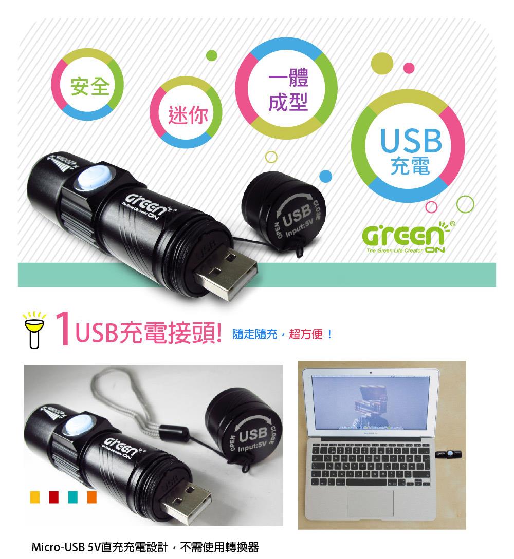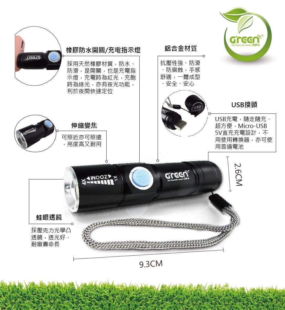 GREENON 強光usb充電手電筒特色 :