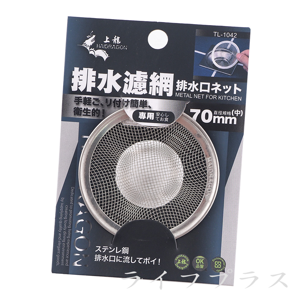 阻擋菜渣、毛髮、小飾品、雜物掉入排水口內 ,導致排水口阻塞,不銹鋼材質,堅固耐用,裝卸容易,適用排水口。