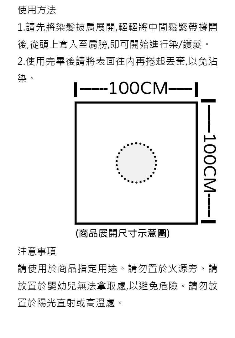 染、燙、剪髮時穿著,保護衣物防水處理,拋棄式設計,材質輕薄,穿脫容易。
