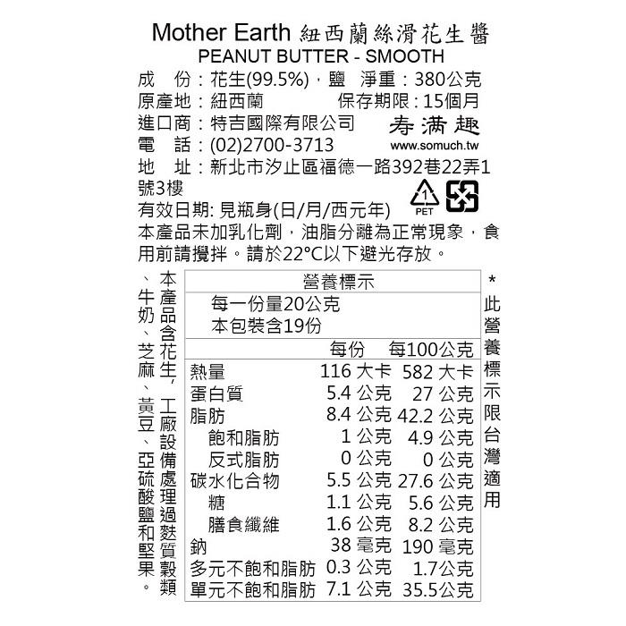 2.商品品名:Mother Earth紐西蘭超級花生醬380gx2