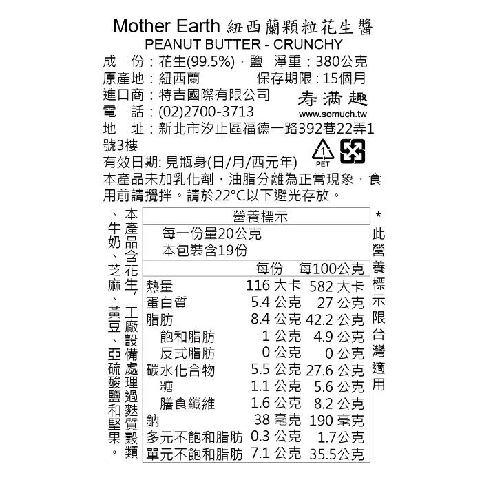 【壽滿趣】Mother Earth紐西蘭超級花生醬380g(5種口味任選2)
