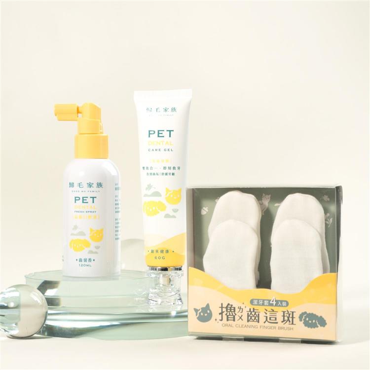 【歸毛家族】寵物一口好牙-齒留香益菌口腔液+齦來健康護齒凝膠+撸齒這斑潔牙套