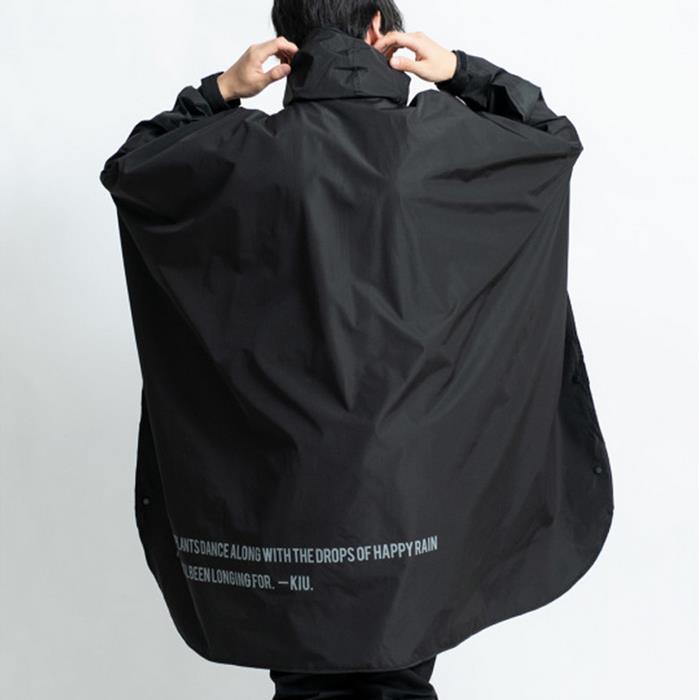 日本KIU 163900 黑色 標準成人空氣感有袖斗篷雨衣 騎車露營必備 附收納袋(男女適用)
