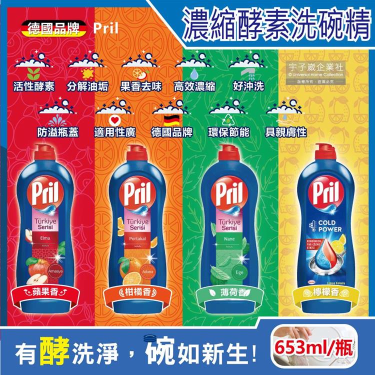 [德國Henkel Pril-高效能活性酵素分解重油環保親膚濃縮洗碗精653ml/藍瓶(廚房餐具,碗盤,料理鍋具清潔劑)