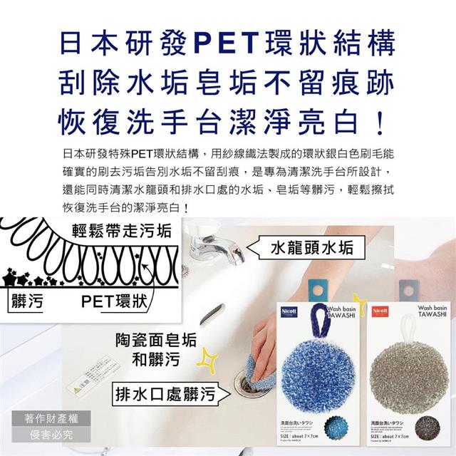 日本研發環狀結構刷毛,PET材質免洗劑輕鬆水洗,刮除水垢、皂垢!商品介紹