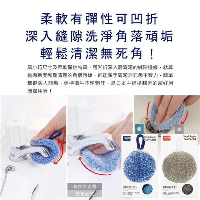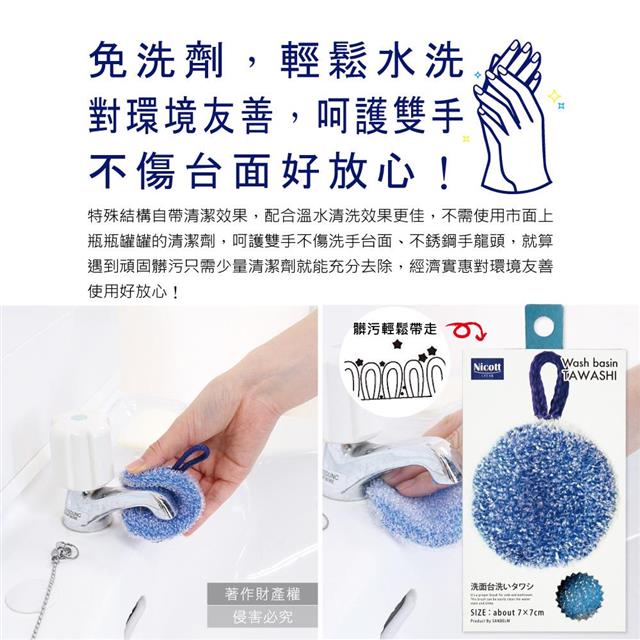 日本SANBELM Nicott-洗手台水龍頭排水口環狀PET免洗劑圓形水垢清潔刷1入/盒
