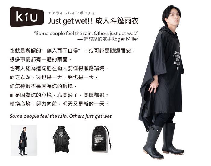 日本KIU 88900 Just get wet!! 黑色 極輕大尺寸 成人斗篷雨衣 騎車露營必備 附收納袋(男女適用)