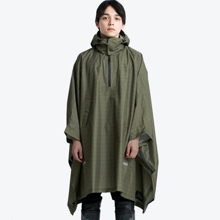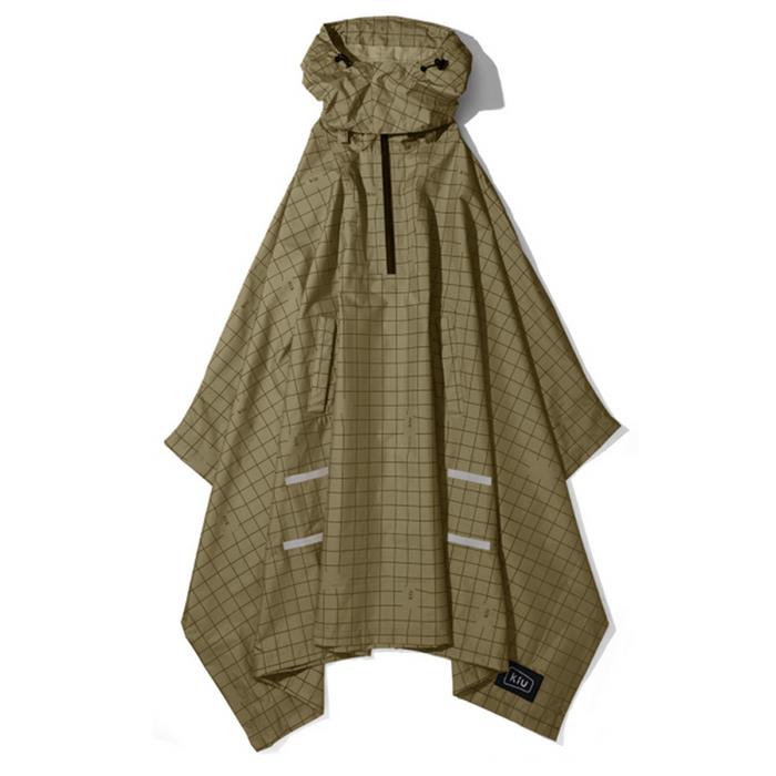 日本KIU 203246 夜光格紋-軍綠 機車/自行車雨衣斗篷 附收納袋(男女適用)