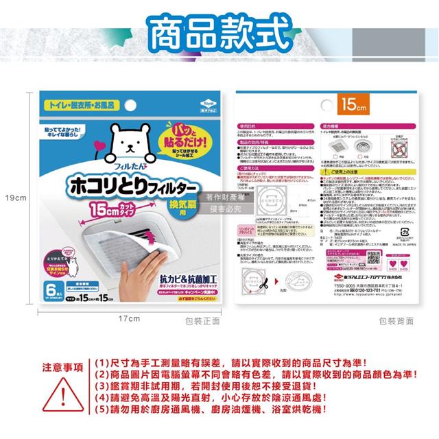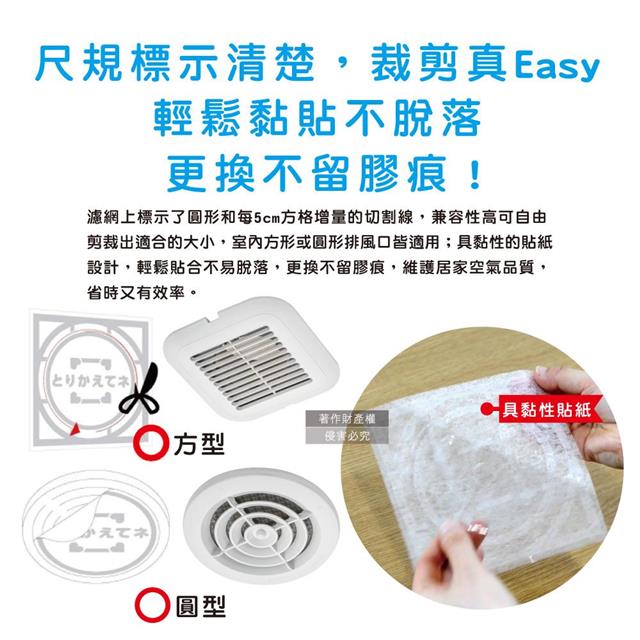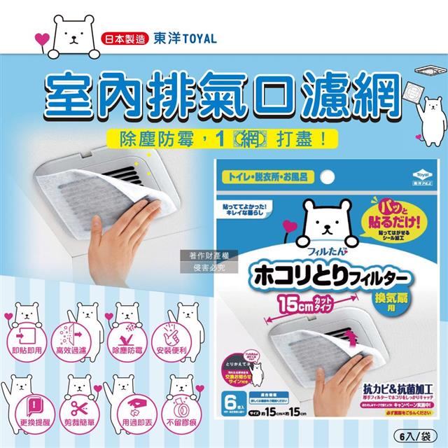 日本TOYAL東洋-室內排氣口除塵防霉阻花粉黏貼拋棄式濾網6入/袋(廁所,浴室,洗手間,方形,圓形排氣口適用)