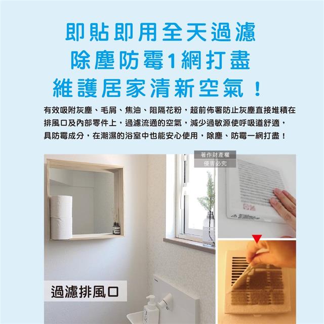 ●品名:室內排氣口除塵防霉阻花粉黏貼拋棄式濾網