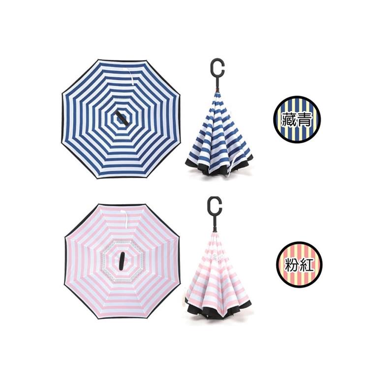 品名:生活良品-C型雙層海軍紋手動反向傘