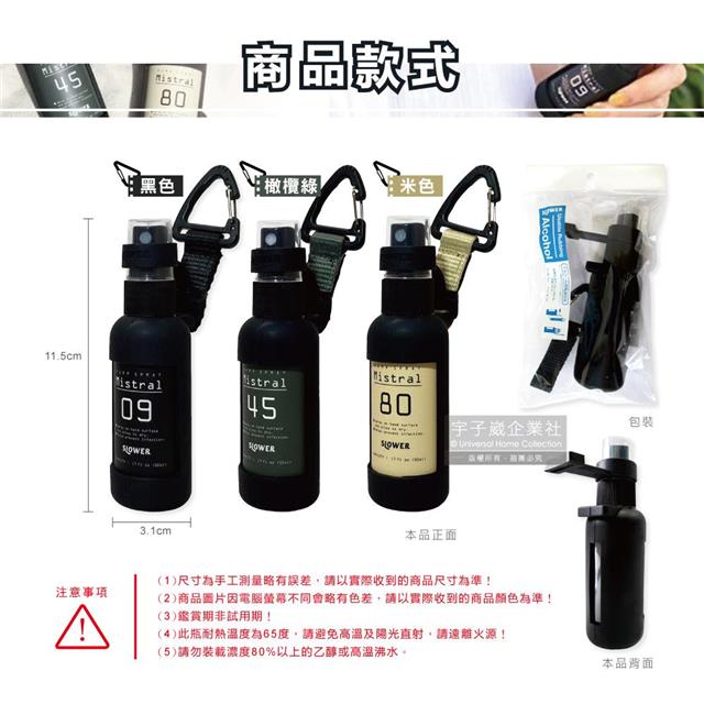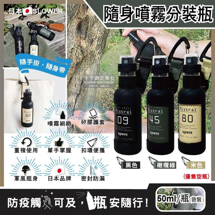 日本SLOWER-戶外防疫密封防漏噴霧隨身分裝瓶50ml空瓶(矽膠護套附扣環)