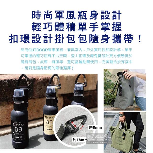 ●輕巧瓶身單手掌握,1瓶用1整天!扣環設計可掛包包隨身攜帶!