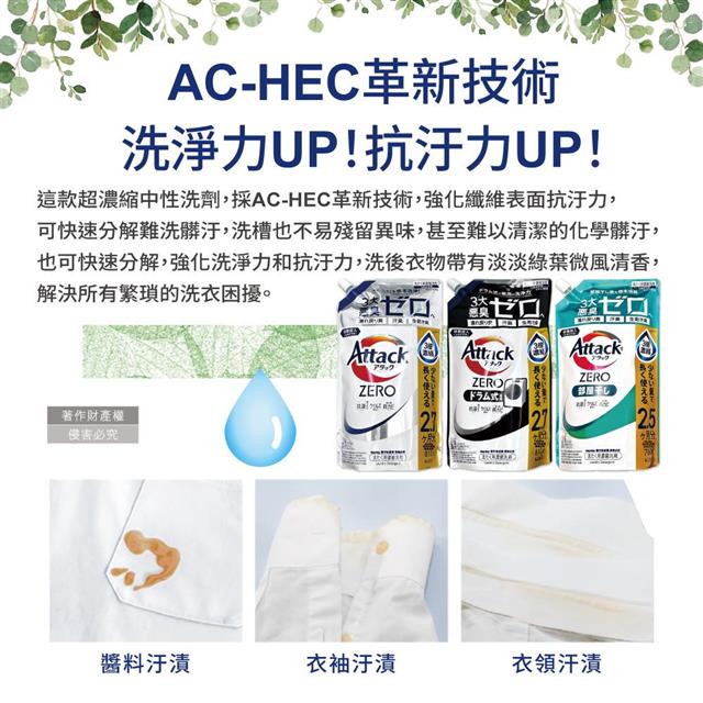 ●品名:Attack ZERO極淨超濃縮洗衣精補充包