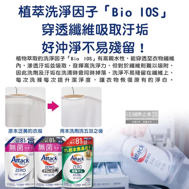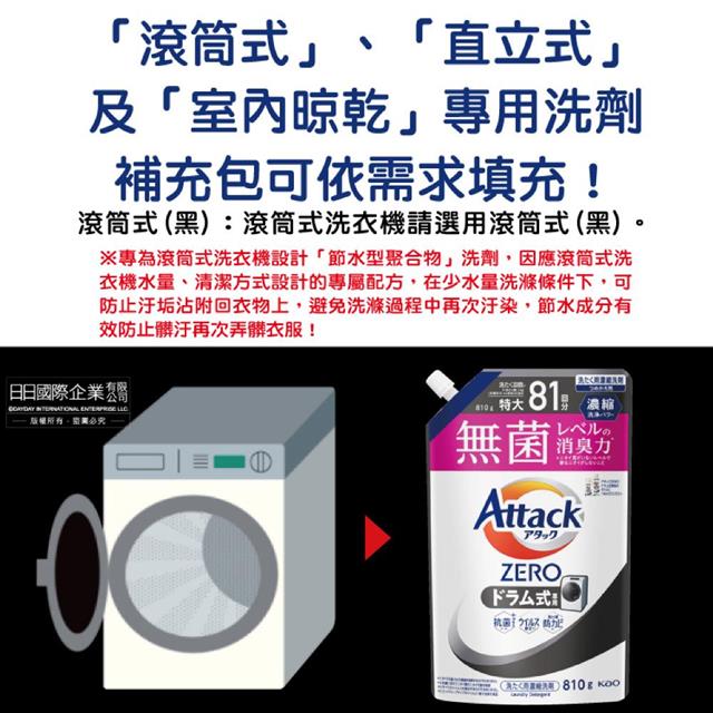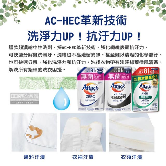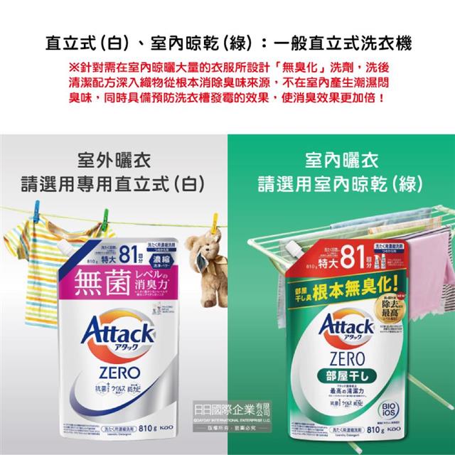 (清潔-衣物)日本KAO花王-Attack-ZERO洗衣精補充包810g袋裝(3款)介紹圖