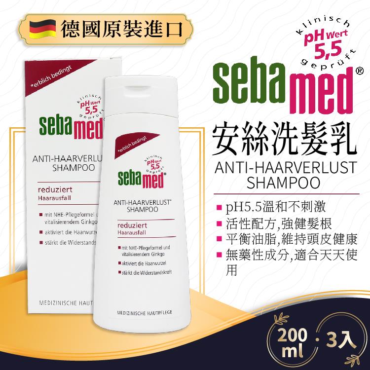 德國SEBAMED PH5.5安絲洗髮乳200ML-3瓶