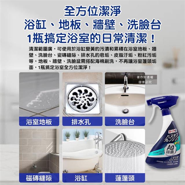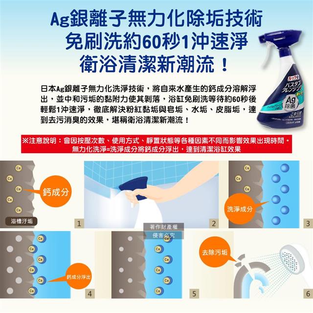 ●品名:LOOK PLUS免刷洗Ag銀離子去除粉紅垢浴缸噴霧清潔劑