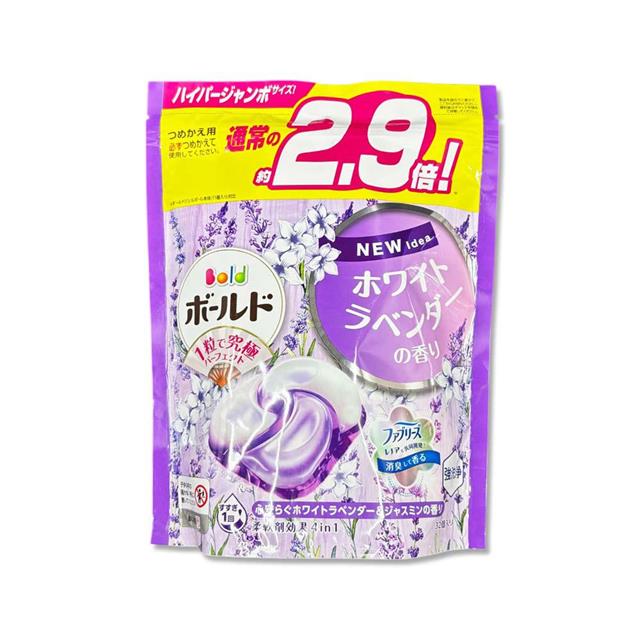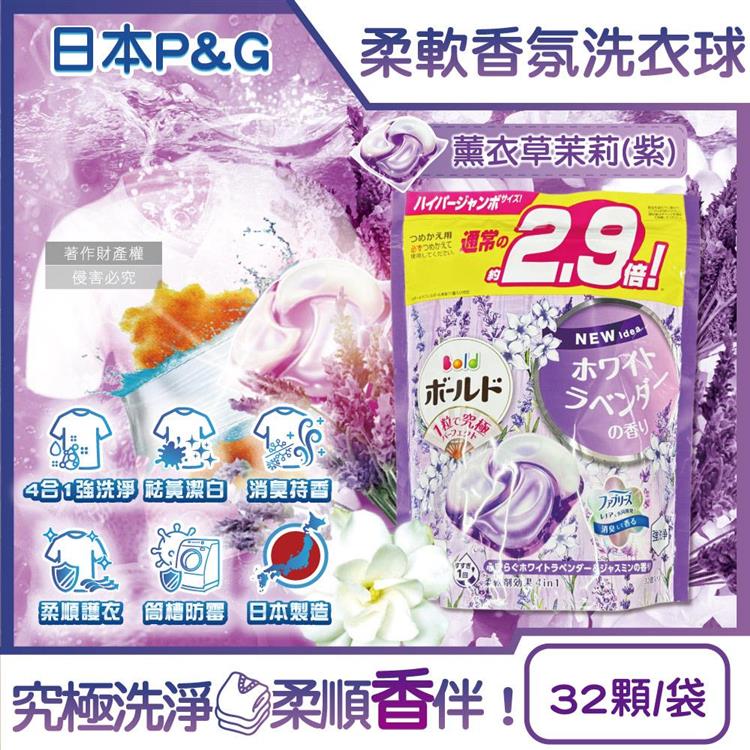 日本P&G-Bold強洗淨4合1消臭柔軟香氛洗衣凝膠球32顆/袋-薰衣草茉莉(紫)(家庭號補充包/防皺好熨燙柔順洗衣球/筒槽防霉洗衣膠囊/直立/滾筒式洗衣機皆適用)