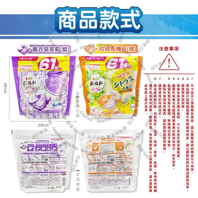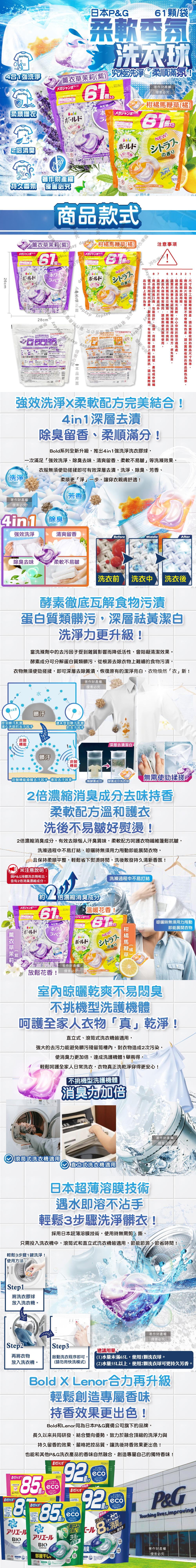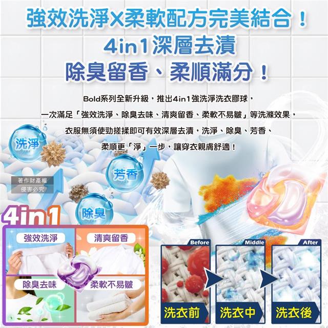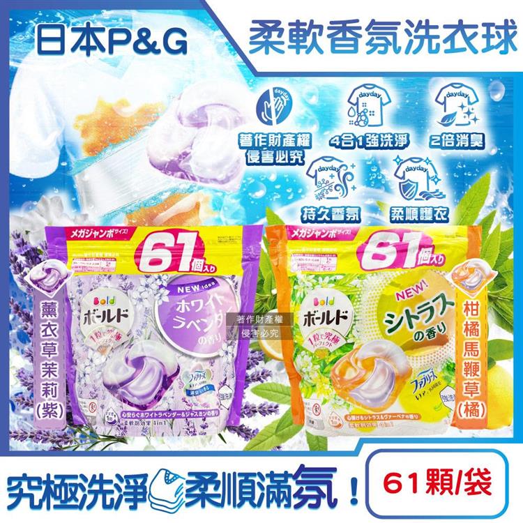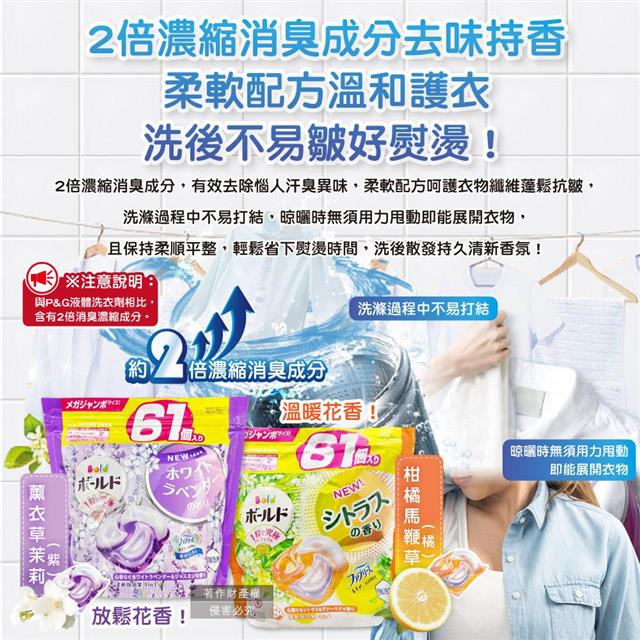 日本P&G Bold- 4合1強洗淨2倍消臭柔軟香氛洗衣凝膠球61顆/袋(濃縮洗衣膠囊/家庭號補充包/洗衣筒槽防霉/衣物防皺好熨燙/全洗衣機型適用)