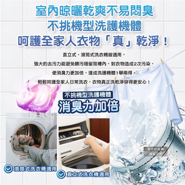 (2)水量55L以上,使用2顆洗衣球可更持久芳香。