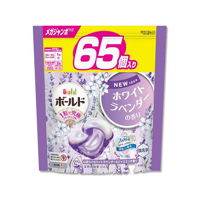 日本P&G-Bold強洗淨4合1消臭柔軟香氛洗衣凝膠球65顆/袋-薰衣草茉莉(紫)(家庭號補充包/防皺好熨燙柔順洗衣球/筒槽防霉洗衣膠囊/直立/滾筒式洗衣機皆適用)