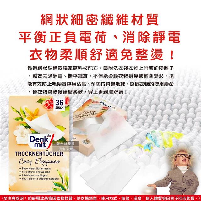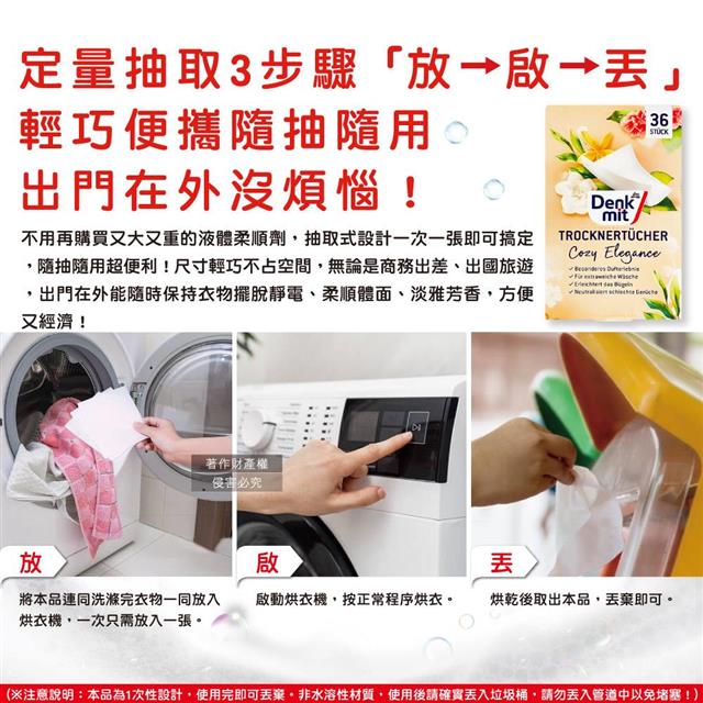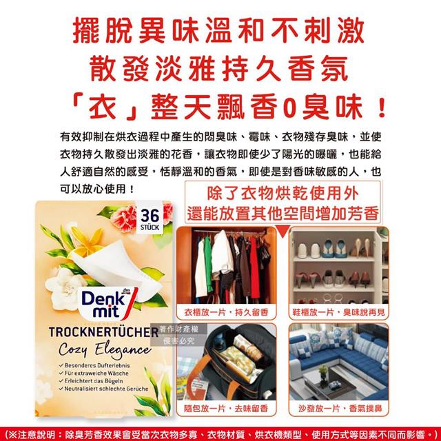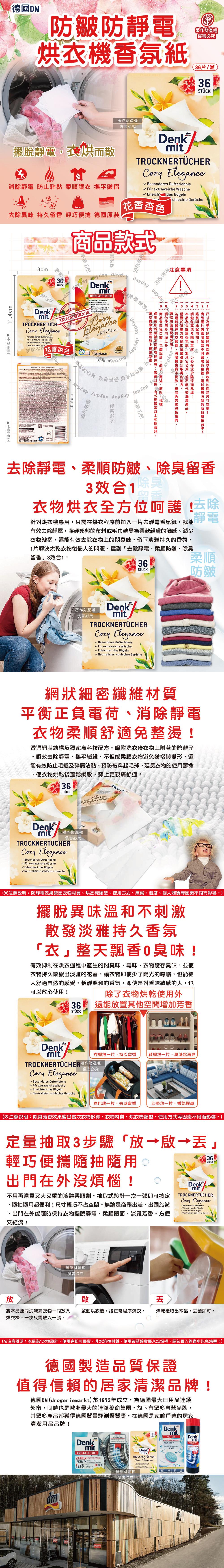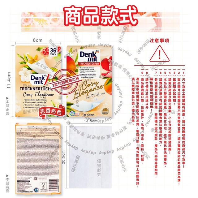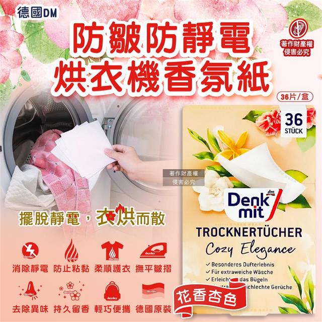 德國DM(Denk mit)-烘衣機專用衣物柔軟防皺除臭去靜電香氛紙-花香杏色36片/盒(防靜電烘衣紙,烘衣香片,香薰柔順片)