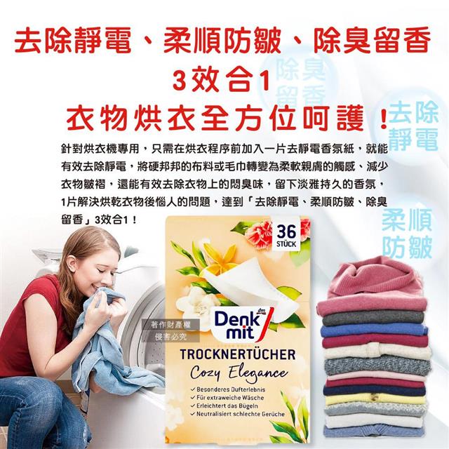 ●「去除靜電、柔順防皺、除臭留香」3效合1,衣物烘衣全方位呵護!