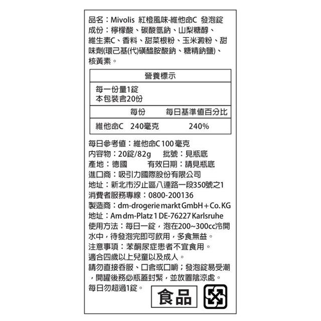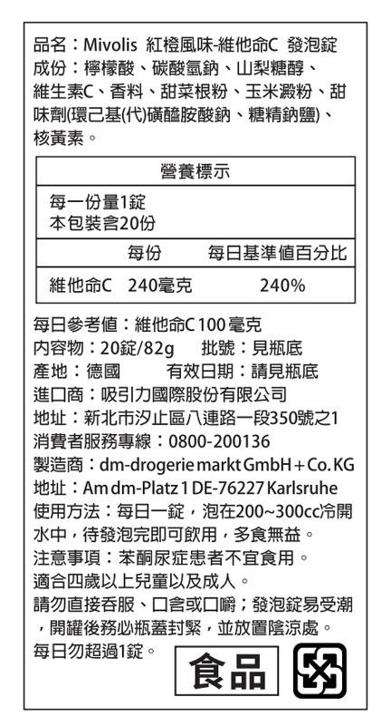 德國dm MIVOLIS 維他命C發泡錠(20錠/82g/支)-6支組