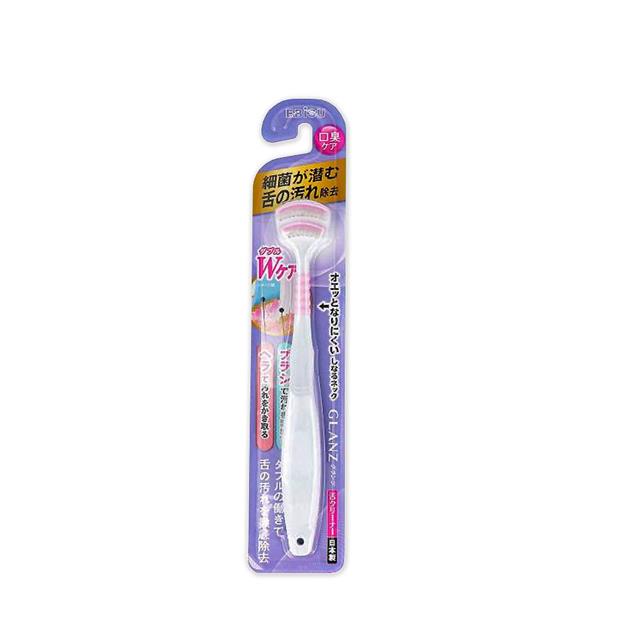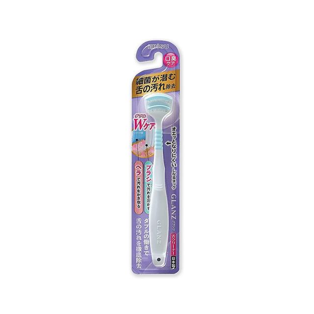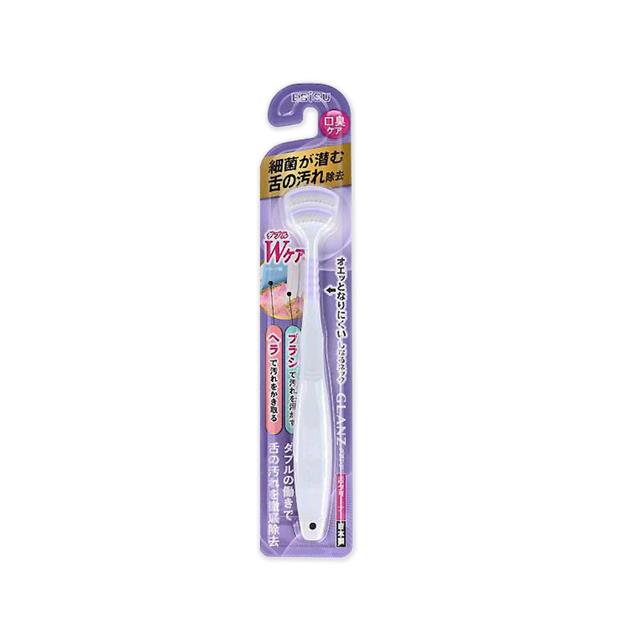 日本EBiSU CLANZ-雙刷毛雙刮片扇形舌苔清潔刷1入/盒(極細軟毛+弧形柔韌刮板,口腔護理刮舌器,舌垢清潔棒,洗舌頭刷,終結口臭)