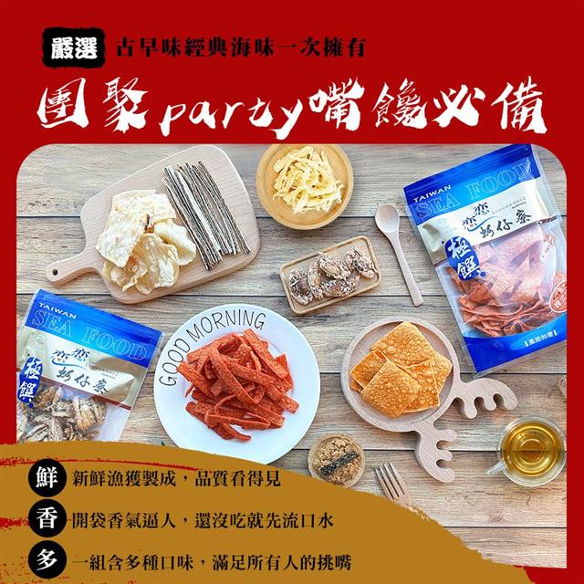 年節團聚嘴饞必備,古早味經典海味一次擁有! 新鮮漁獲製成,品質看得見 越嚼越香的濃郁海味,一口接一口超唰嘴