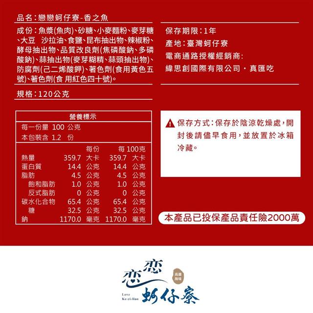 過敏原標示:本產品含有魷魚、魚肉、大豆、小麥、芝麻、堅果,不適合對其過敏體質食用。本產品生產製程廠房,其設備亦有處理螺貝類、蝦、蟹、牛奶、蛋、頭足類、芹菜之產品。
