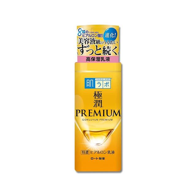 日本ROHTO樂敦-HADALABO肌研極潤金緻7重玻尿酸高效保濕潤澤特濃精華乳液140ml/金瓶(Premium臉部肌膚護理乳霜,素顏保養乾肌水凝乳)