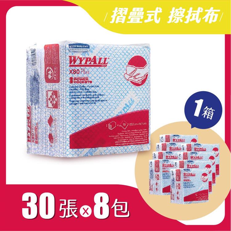 【勁拭】WYPALL* X80 Plus摺疊式擦拭布30張*8包/箱-藍