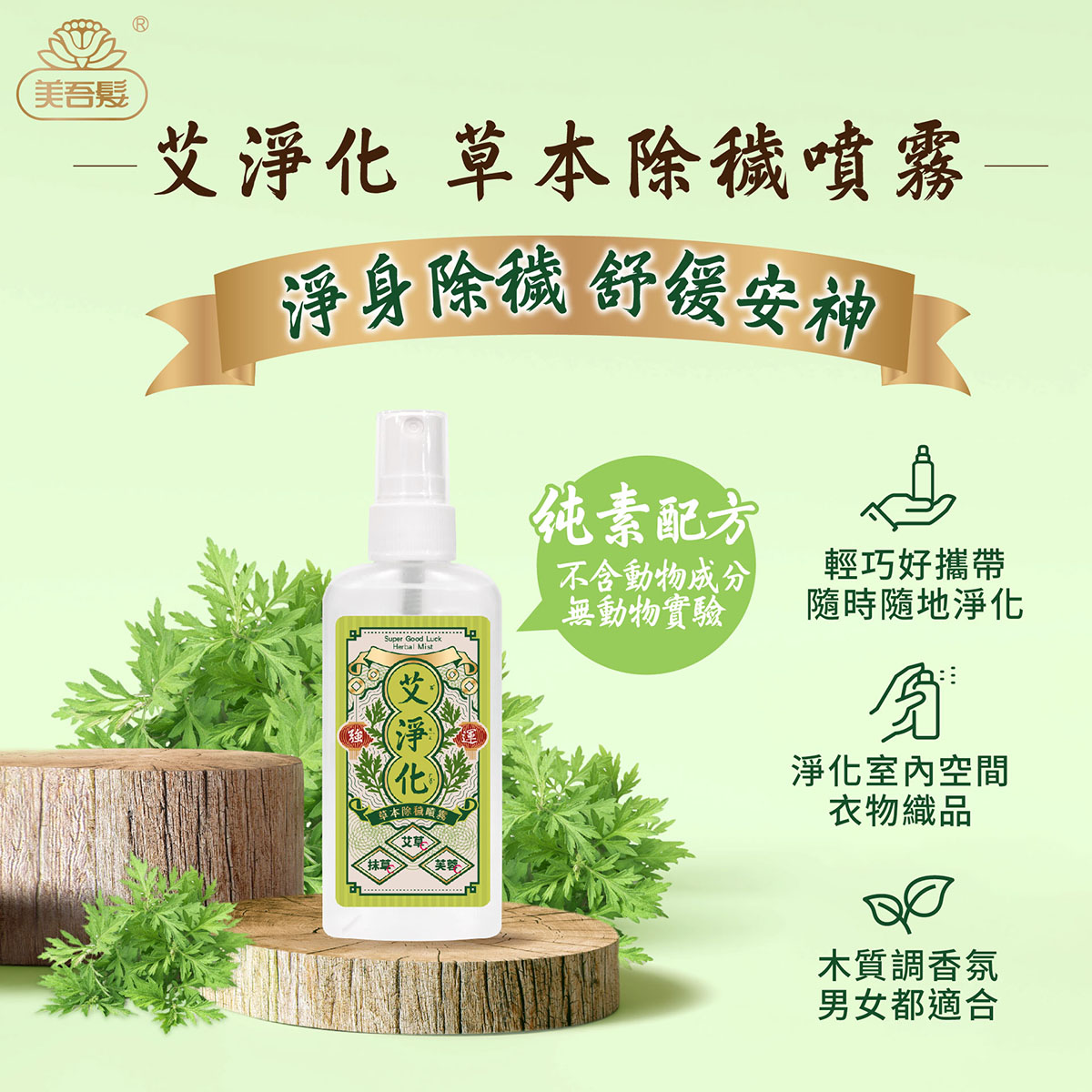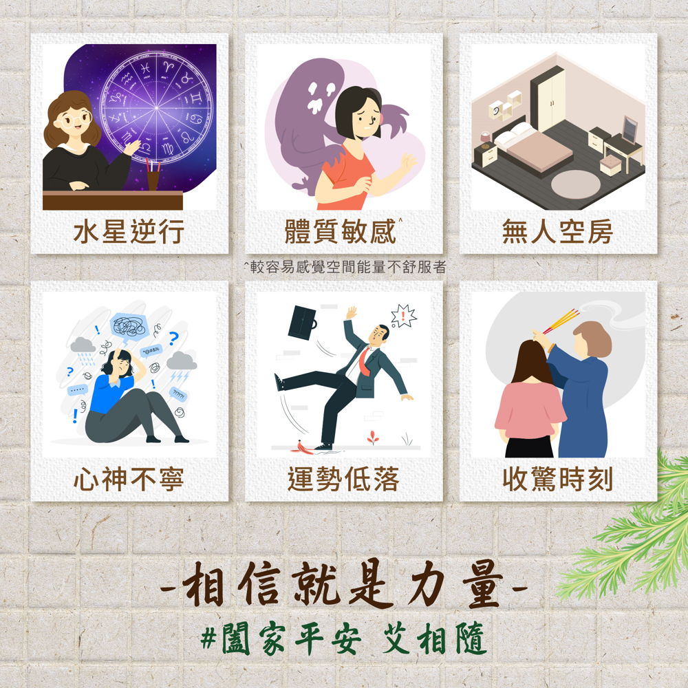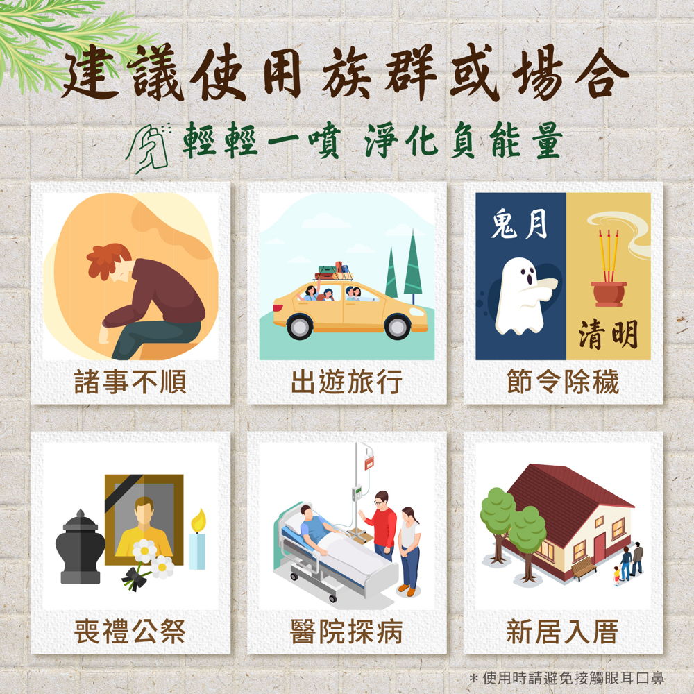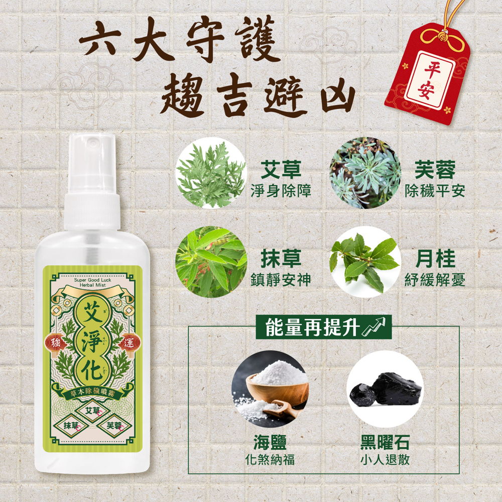 艾草、芙蓉、抹草全面淨化,檀香、鼠尾草、沉香純露,正能量滿滿