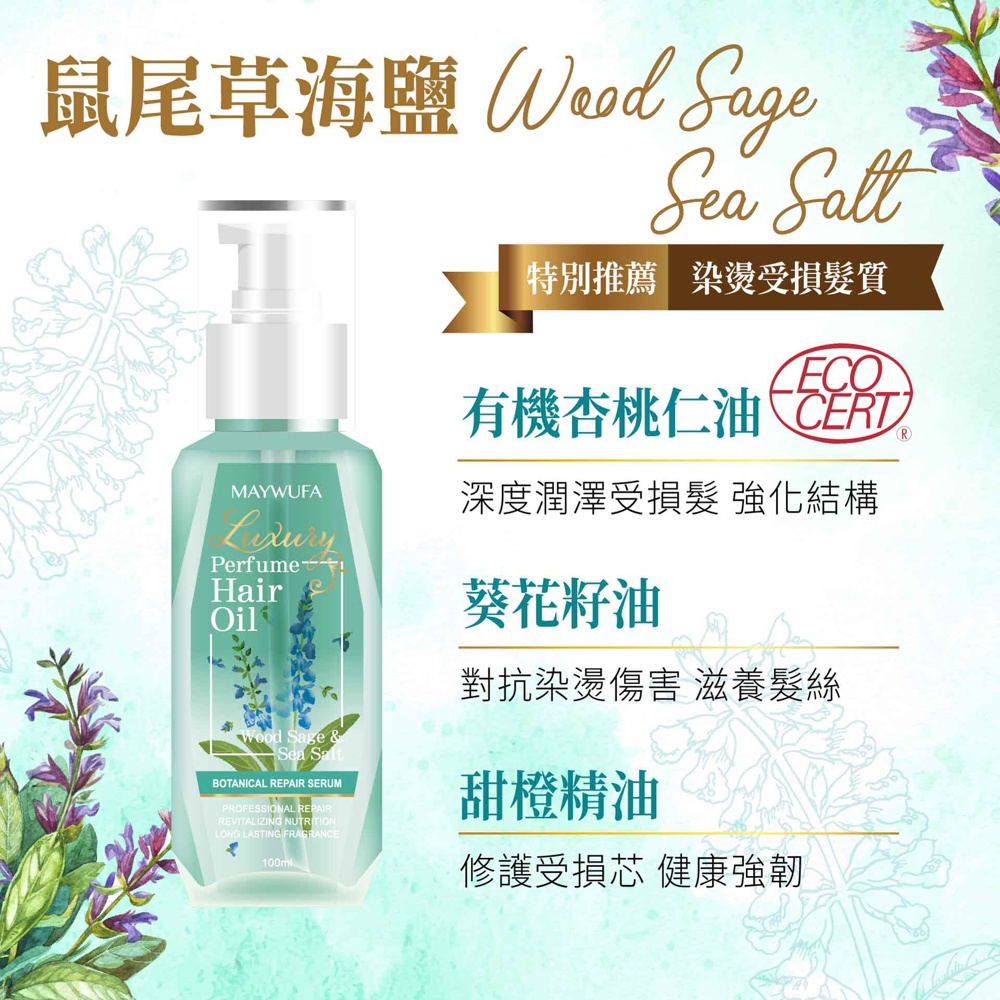 【香水髮油】鼠尾草海鹽.極致奢香護髮精油-免沖洗100ml (經典香氛/國民髮油/香水髮油/護髮油/護髮精油)