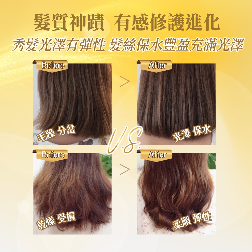 1.草本植萃精華 深入修護-有機杏桃仁油、甜橙精油、摩洛哥堅果油、葵花籽油、維他命E,深入滋養修護染燙受損髮質