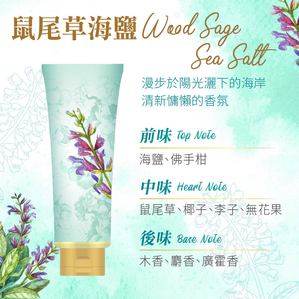*蘊含Ecocert有機認證鼠尾草精萃,滋潤亮澤每一吋肌膚。